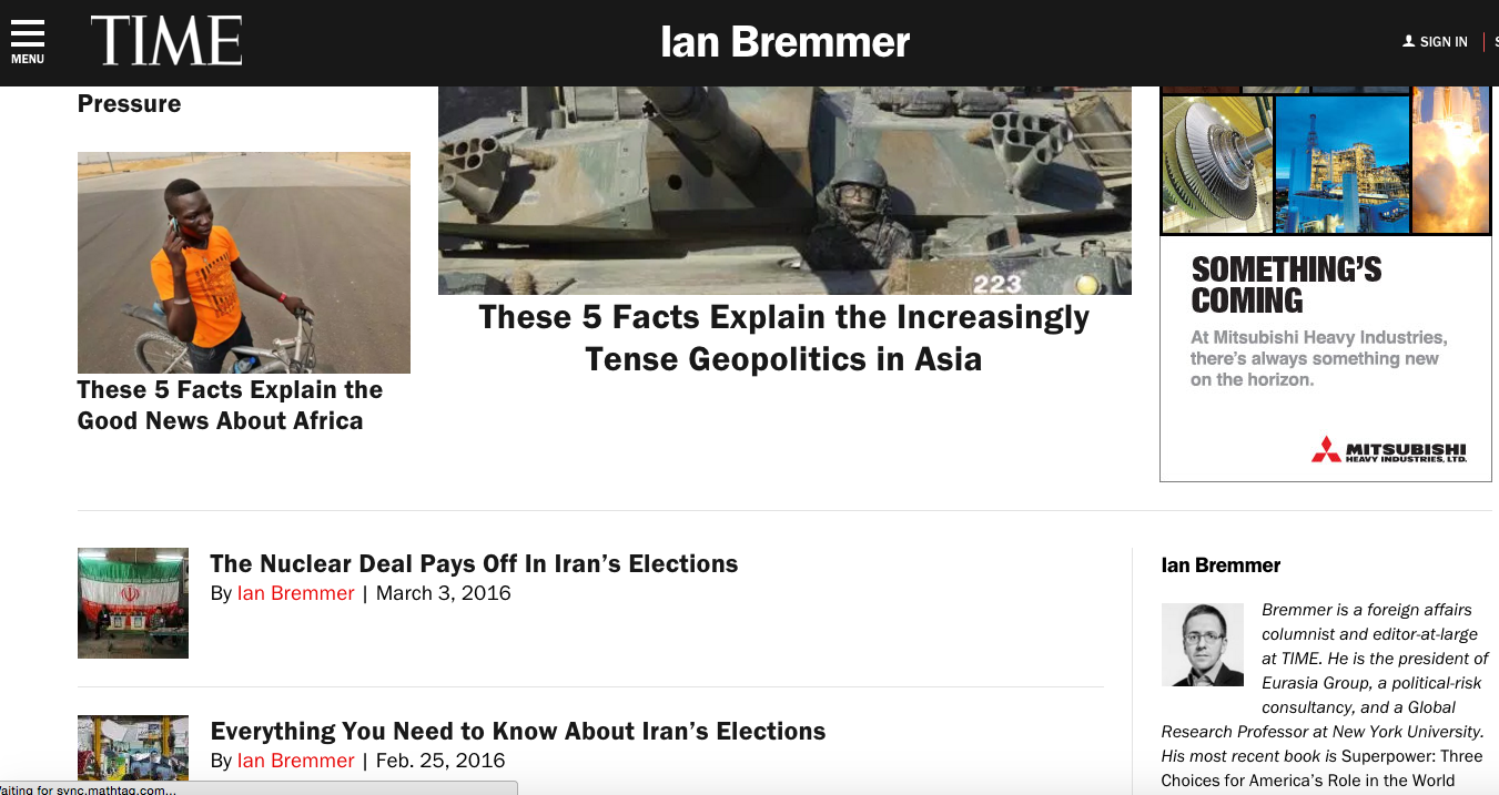 “Time” сэтгүүлийн шинэхэн автор Иан Бреммерийн нийтлэлүүдэд дуртай. Тиймээс зөвхөн түүний хуудсаар өдөрт нэг удаа заавал ордог. Яг одоо анхаарлын төвд байгаа халуун сэдвүүдийг барьж аваад, таван хэсэгт хуваагаад бүхий л гол мэдээлийг багцлаад биччихдэг нь амар байдаг. “Economist” сэтгүүлийн “Economist explains” цэсэнд яг одоо анхаарлын төвд буй чухал мэдээллийг товч мэдээлэл, инфографик тайлбарын хамт маш ойлгомжтойгоор хүргэдэг. Өдөрт нэг л удаа, нэг л сэдэв.