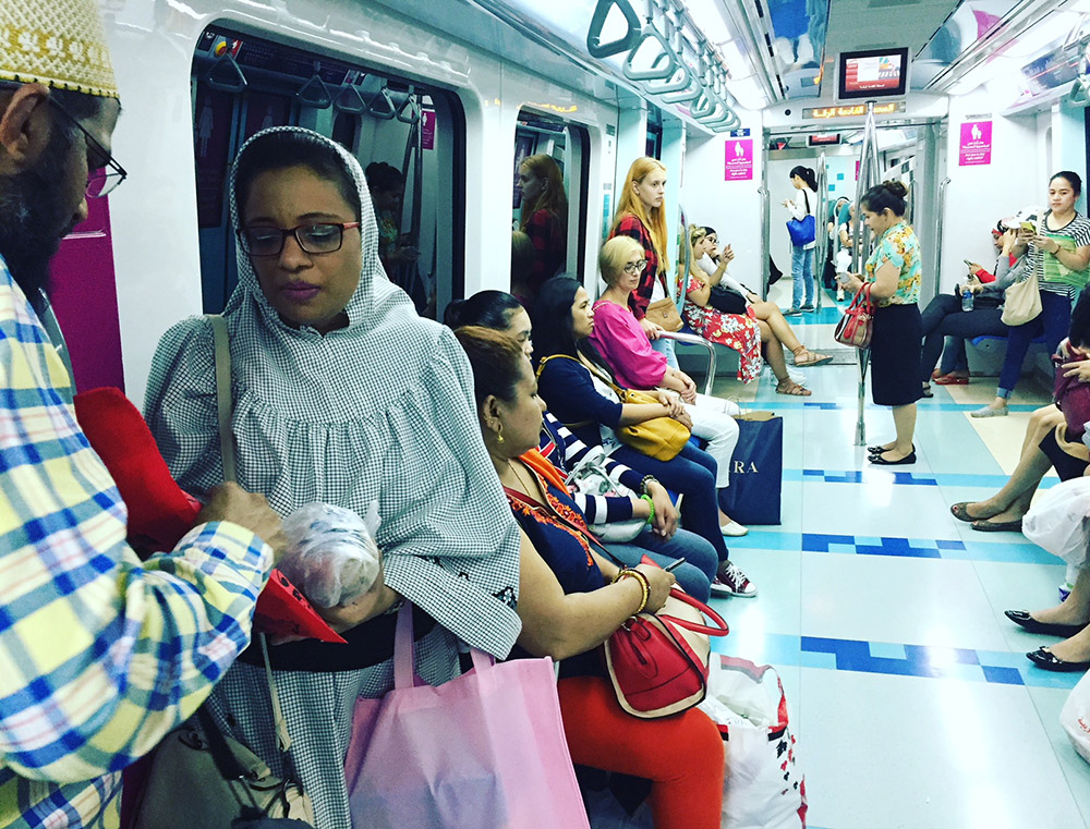 Бас нэг тохиолдсон явдлаа хүүрнэхэд Дубай Марина хэсгээс Хуучин Дубай чиглэлийн метронд үсэрч суугаад юу ч бодоогүй явж байтал эмэгтэйчүүд нь нэг л муухай хараад болдоггүй шүү. Сүртэй хогнуудав, ийм гоё сэлүүхэн, хэнд ч гай болоогүй байхад яагаад байгаа юм бол доо гэхшүү юм бодоод байж байтал Филиппин бололтой хоёр эмэгтэй “This section is for women only” гээд түсхийтэл аваад хаялаа. Сөхөө аваад хартал нээрээ л эргэн тойрон зөвхөн эмэгтэйчүүд суух агаад нэлээн цаана улаан шугамны ард эрчүүд нь чихэлдчихсэн над руу тун ширүүн догшин харцаар ширтэн даллаж байв. Эмэгтэйчүүд, эрэгтэйчүүд нь нийтийн тээврээр тусдаа зорчдог ажээ. Тэгсэн нүдэн дээр нэг гэр бүл орж ирээд нөхөр нь эрчүүд дундаа чихэлдэж, эхнэр нь хоёр охиноо дагуулаад эмэгтэйчүүдийн хэсэг рүү орж явчихлаа. Ёс алдлаа, ёс алдлаа гээд л муусайн эрчүүд рүүгээ гүйсэн гэж байгаа.