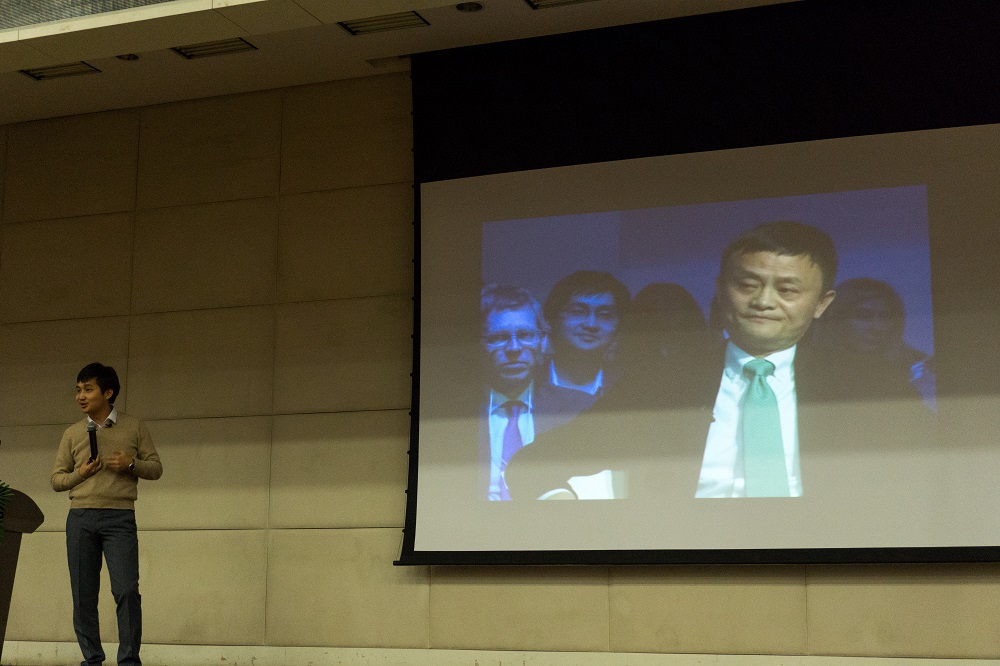 "Жэк бид 2" зургаараа илтгэлээ эхлүүлэв. Жэк Ма яг энэ өдрүүдэд 11.11-ний хямдралаараа 15 тэрбум долларын борлуулалт хийж, кунфүгийн мастер болсон киноны нээлтээ хийгээд байсан билээ.
