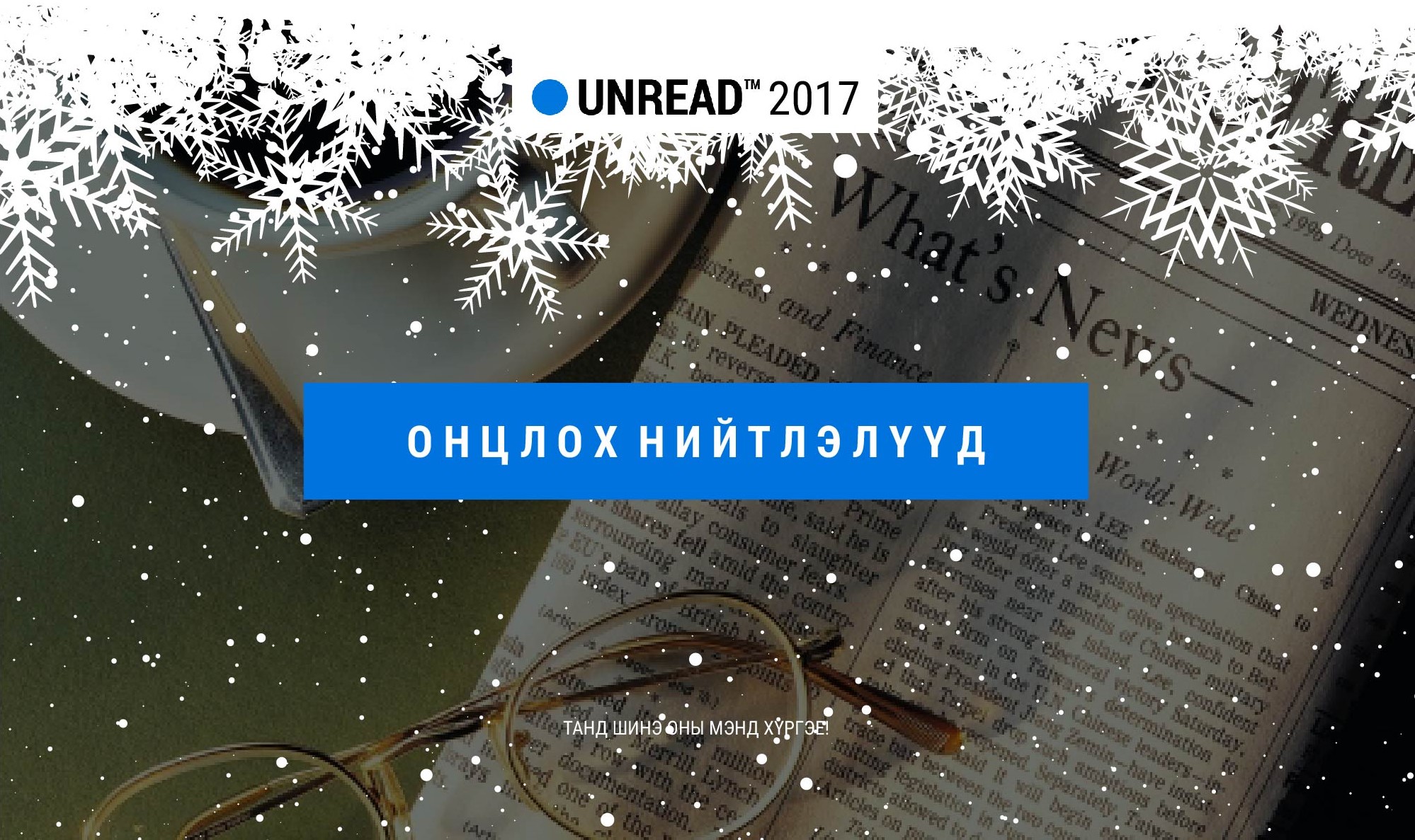 2017 оны онцлохуудыг нэрлэх Unread Special цуврал контент танд дараах хуваарийн дагуу хүрнэ:
