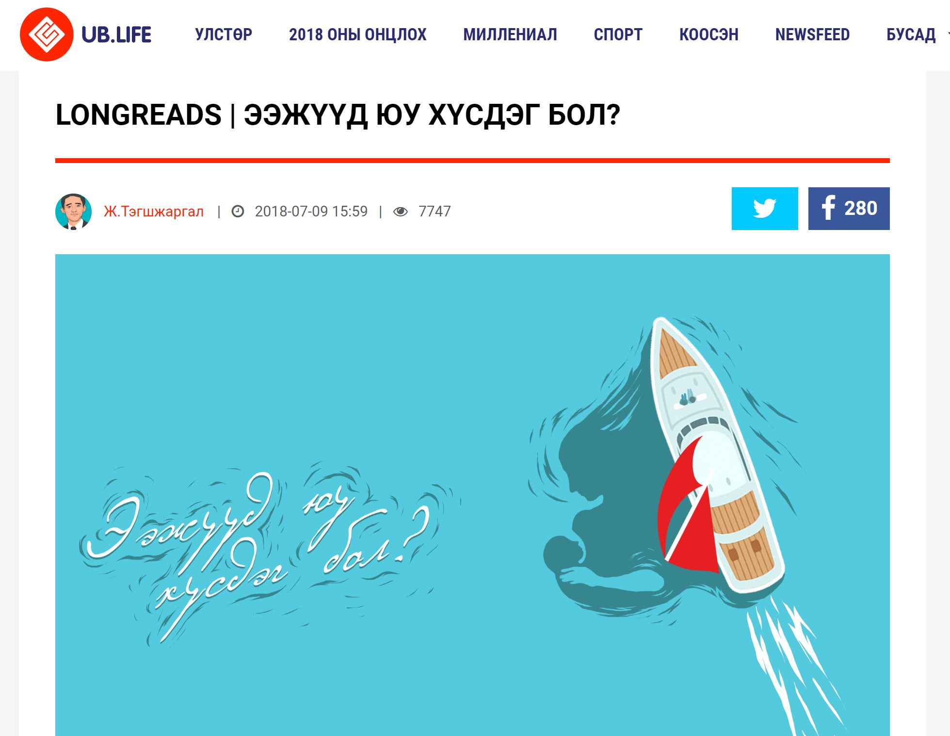 UB.LIFE-ийн эрхлэгч Ж.Тэгшжаргалын энэ нийтлэл ээжүүдийн тухай зүгээр ч бодрол, зүгээр ч нэг хувийн түүх-туршлага биш. Энэ бол үе үеийн залууст нэгийг бодуулах, олон хүмүүсийн дотор хүлэгдсэн гунигт дурсамжийг сэдрээх, хүн бүрд төрдөг харууслыг эргэн төрүүлэх сургаал-сургамжийн дайтай бичвэр. Заавал унших, уншиж үзээд эргэцүүлэх, эргэцүүлээд үйлдэл хийх учиртай нийтлэл.