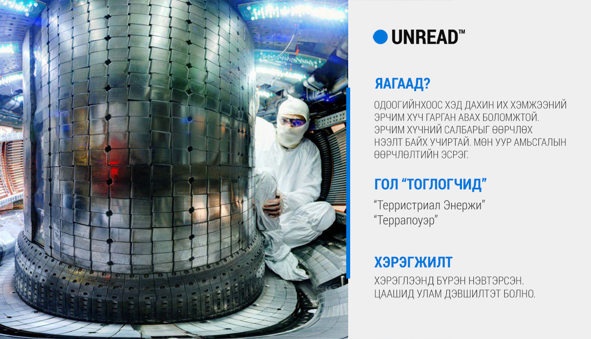 Тэгвэл тэрхүү нэгдэл болон хуваагдлын үйл явцаас эрчим хүч гаргаж авах реакторууд энэ оны тренд сэдвүүдийн нэг байх болно. Энэ тал дээр Канадын "Террестриал Энержи", АНУ-ын Вашингтонд байрлах "Террапауэр" зэрэг компаниуд ажиллаж байгаа бөгөөд "R&D" тоног төхөөрөмжийн тал дээр хамтран ажиллаж байна.
