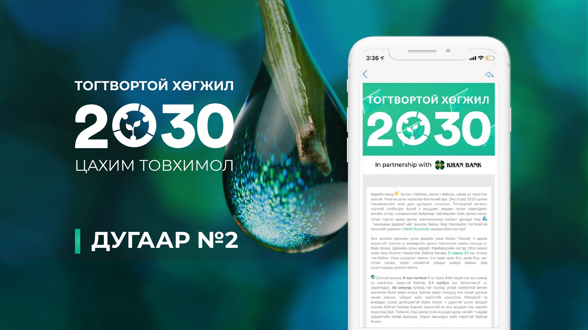 “2030” цахим товхимлыг хамтран бэлтгэж буй ХААН Банк 2017 оны сүүлээс тогтвортой хөгжлийн асуудалд онцгой анхаарал хандуулж эхэлсэн юм. Тэд хийж, хэвшүүлсэн бодитой ажлууд, үр дүнгээ тайлагнахаар "Тогтвортой хөгжлийн тайлан"-г жил бүр гаргадаг болжээ.