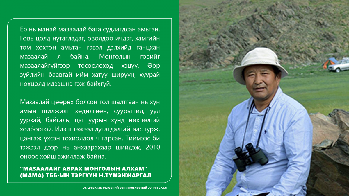 Гэхдээ сүүлийн жилүүдэд бэлчээрийн даац хэтэрч, малын тоо толгой их өсөх болсноор мазаалайн бэлчээр хумигдаж, идэш хоол хомстож буйг анхаарах шаардлагатайг байгаль хамгаалагчид мэдээлсээр байна.