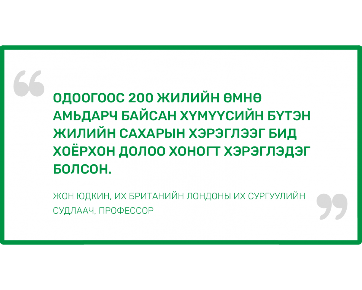 Хэрэв та өөрт ойр хүнсний дэлгүүрт орвоос архи, тамхи гэхчлэн бүтээгдэхүүн дээр "Хэтрүүлэн хэрэглэх нь таны эрүүл мэндэд хортой" гэх үгс тод дурайж байхыг олж харах вий. Харин тэднээс дутахааргүй донтуулах үйлчилгээтэй нэмэлт сахар агуулсан хийжүүлсэн ундаа, амтат зайрмаг, аяган бялуунууд нүд эрээлжлэм олон төрлөөрөө “намайг аваач” гэсэн шиг лангуу дүүрэн өрөөстэй байх нь гайхширмаар.
