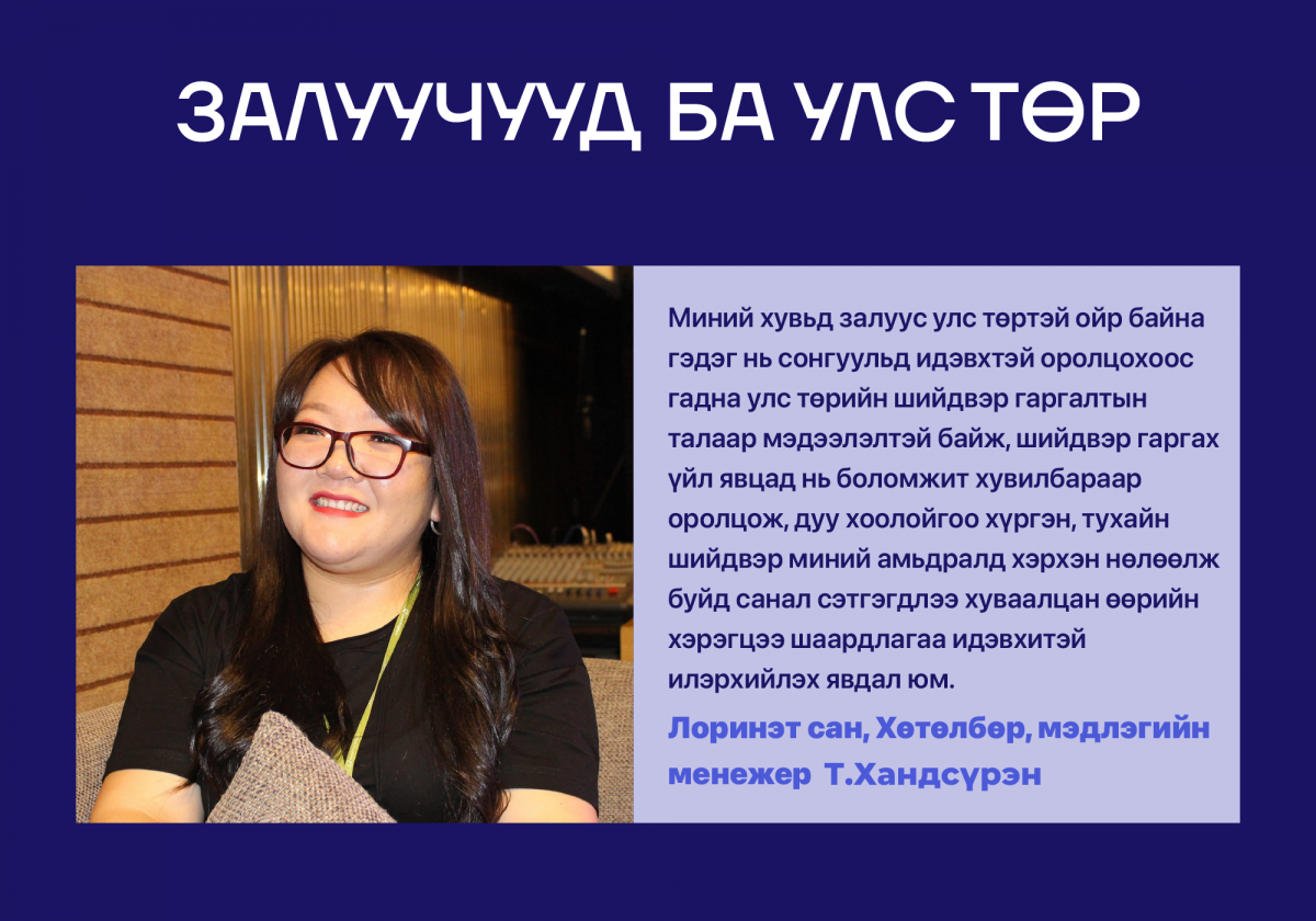 2. Улс төрийг залуучуудад ойртуулах чиглэлд хийсэн хамгийн үр дүнтэй ажлаа хуваалцвал?