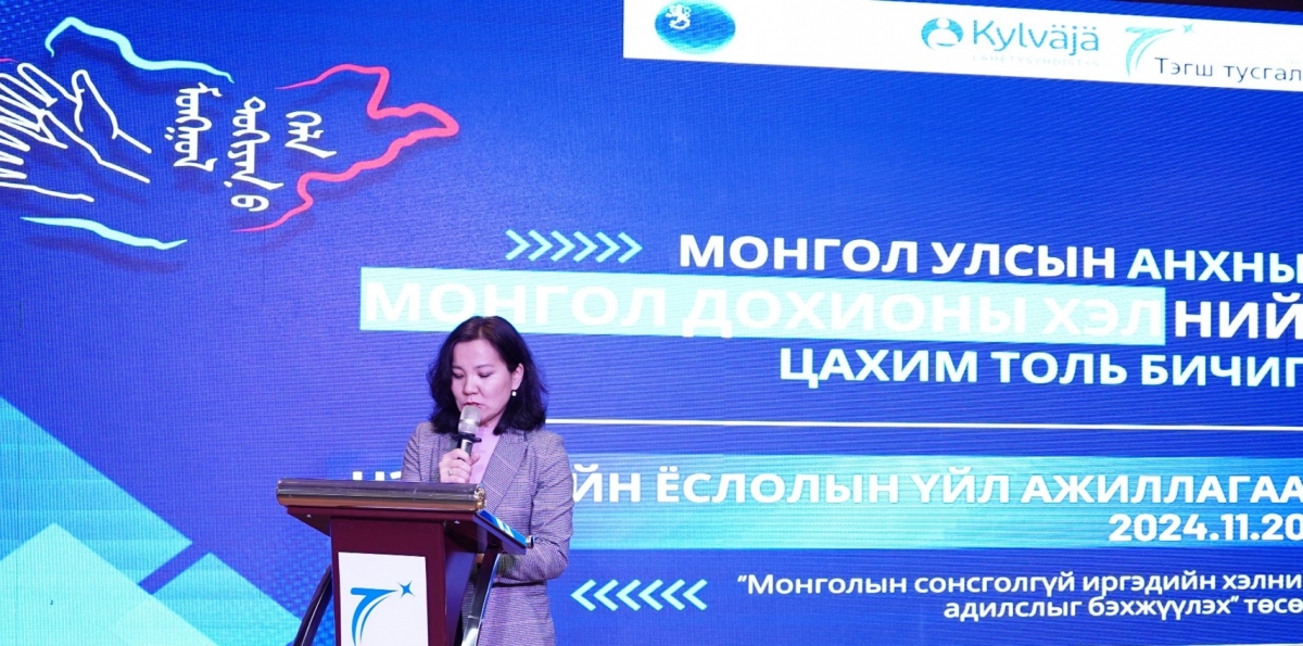 Ковер зургийн тайлбар: “Монголын сонсголгүй иргэдийн хэлний адилслыг бэхжүүлэх” төслийн менежер Л.Соёлмаа