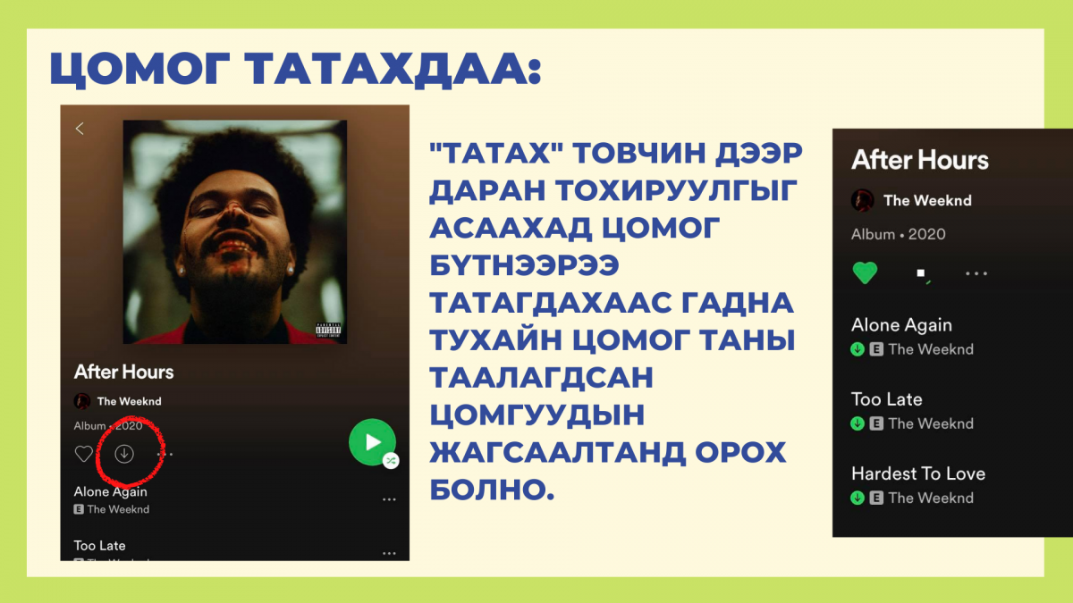 Spotify-ийн төлбөртэй үйлчилгээний хэрэглэгчид сонирхсон контентоо хэд хэдэн аргаар татаж болдог. Та хэрэв шинэхэн хэрэглэгч бол дараах мэдээллийг заавал уншаарай.