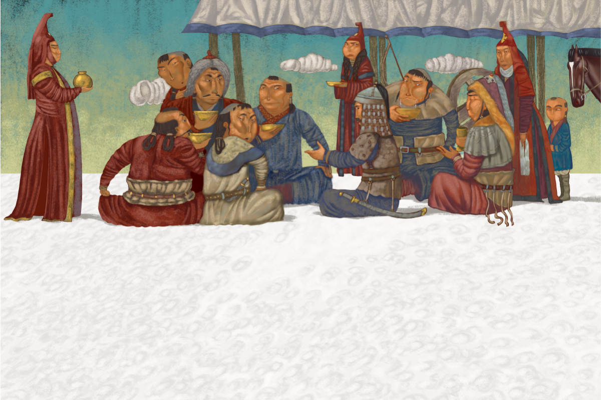 Номын зургуудад орчин үеийн иргэншил болоод 13 дугаар зууны үеийн монголчуудын аж төрөхүй, уламжлалт идээний нэг болох ааруул хэрхэн хийж буйг өнгө будаг, туурвин бүтээгчийн сэтгэлгээний онцлогоор илэрхийлэн харуулжээ. Хуудасны зураг бүр зохиолын үргэлжлэн буй үйл явдлын гол цөм, утга санааг цогцоор илэрхийлэн харуулна.