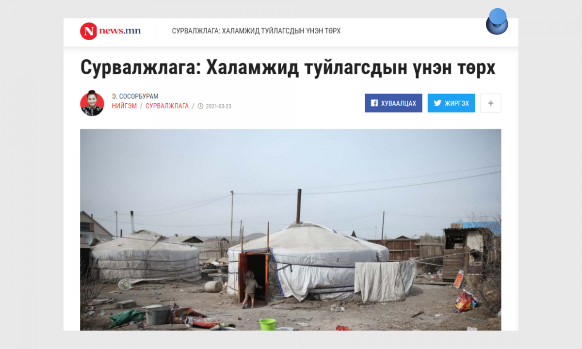 Нийслэлд яагаад Ковид-19 цар тахлыг хяналтаасаа алдсаны хариултыг оргил дэгдэлтээс нь өмнө хийсэн энэхүү сурвалжлагаас бэлээхэн харчихаж болно. Хотын хамгийн том мөртлөө хамгийн алслагдсан, ядуус ихтэй Баянзүрх дүүрэгт хийсэн энэ сурвалжилгын гэрэл зургууд нийгмийг цочроосон юм. Иргэд амны хаалт авах уу, талх авах уу гэсэн сонголттой тулгарчихаад буй тухай сэтгүүлчийн бичиглэл ч бас мэдээлэх зарчмаа баримталсан мэргэжлийн ажил болж чаджээ.