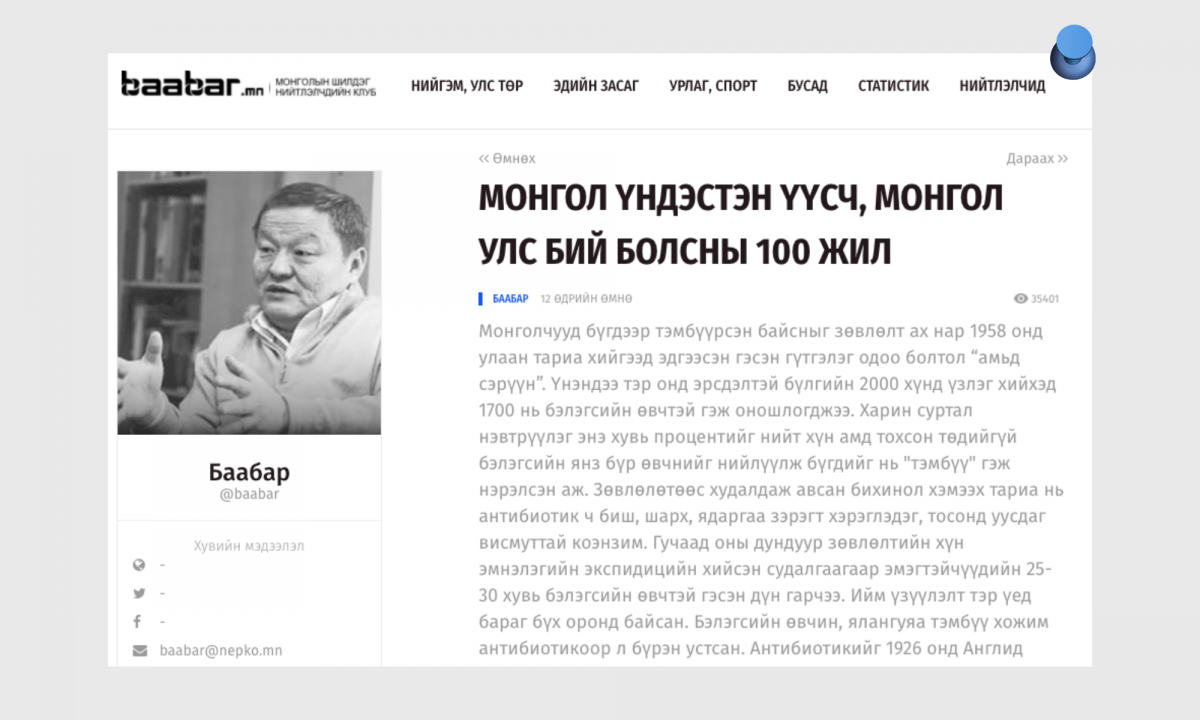11. Baabar.mn: Ардчилагдсан нь (цуврал нийтлэл)