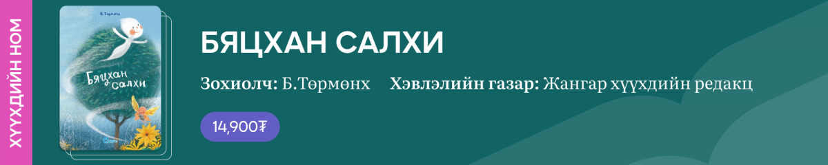 Жангар редакц уншигчдадаа хүүхдийн номын зохиолч, зураач Б.Төрмөнхийн шинэ бүтээл болох “Бяцхан салхи” номоо хүргээд удаагүй байна. “...Хаврын нэгэн өдөр бяцхан салхи мэндэлжээ. Тэр аав ээж, эгч шигээ хүчирхэг салхи болж суурингийн хүмүүсийн малгайг хийсгэж сурахыг хүснэ. Гэвч тэр газарт хэвтэх ганц навчийг ч хөдөлгөх хүчгүй байлаа…” хэмээн уг бүтээл эхэлдэг. Хүүхэд бүрийн бушуухан том болох хүслийн тухай өгүүлэх уг бүтээл хүүхэд багачуудад олон зүйлийг ойлгуулж оюуны маш үнэтэй хувь нэмэр болох нь дамжиггүй.