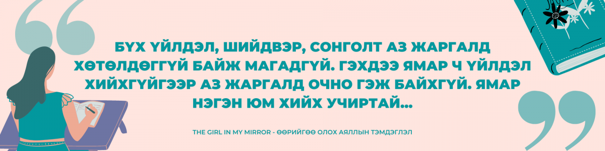 Таны түүхийн гол дүр болох өөрийгөө танихад туслах “The Girl in The Mirror- Өөрийгөө олох аяллын тэмдэглэл” номыг тоймлон хүргэе.
