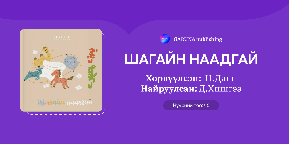 Сонирхуулахад, зөвхөн шагайгаар тоглож болох 13 наадгай байдаг ба тэрхүү жагсаалтад багтах “Тэмээ ачих,” “Морь уралдуулах,” “Эвэр шатар,” “Гүү саах” зэрэг төрөл бүрийн наадгайн үүсэл гарал, ач холбогдлыг номоос дэлгэрүүлэн уншаарай.
