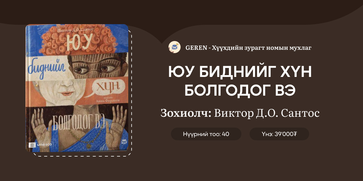 Оюуны хөгжлийг дэмжиж, санаа, бодол өдөөх “Юу биднийг хүн болгодог вэ” ном 2023 онд хэвлэгдсэн цагаасаа хойш дэлхийн улс орнууд болон ЮНЕСКО-ийн хамтралаар Франц, Испани, Хятад, Перс гэхчлэн 30 гаруй хэлнээ орчуулагдаж, уншигчдын хүртээл болжээ. Номын зохиолч Виктор Д.О. Сантос мэргэжлийн хэл зүйч бол зураач Анна Форлати нь эртний Грек болон Латин хэл суралцаж асан идэвхтэй суралцагч. Эл бүтээл 2023 онд Германы Мюнхэн дэх ОУ-ын Залуучуудын Номын сангаас гаргадаг “The White Ravens” каталогийн шилдгээр, удаах онд нь Америкийн Иллюстораторуудын нийгэмлэгээс Шилдэг эх бүтээлийн үзэсгэлэнд шалгарсан юм.