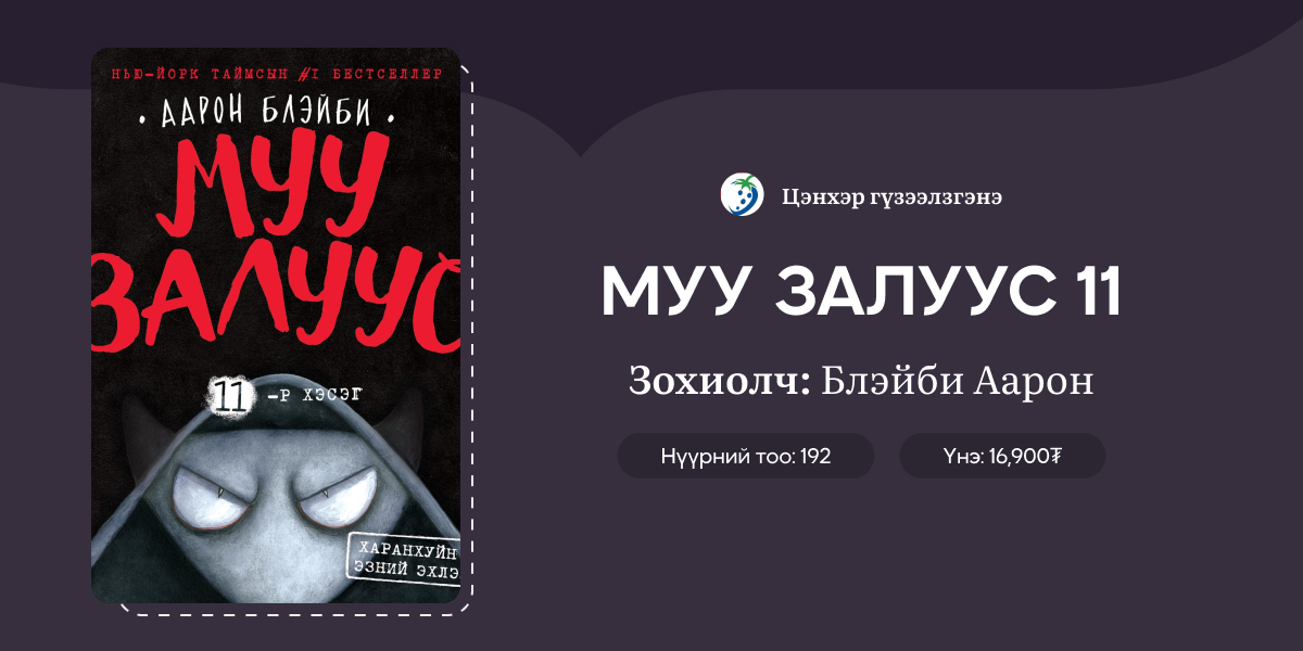Дэлхий даяар хүүхэд багачууд, өсвөр насныхны дуртай ном болсон “Муу залуус” цувралын 11 дэх дэвтэр монгол уншигчдын хүртээл боллоо. Сайн болох гэж хичээж буй “муу” залуусын түүх энэ удаа ч инээд наргиан, адал явдлаар дүүрэн байх аж.