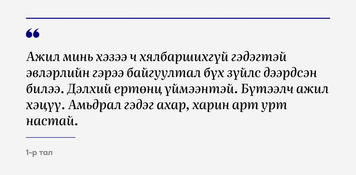 Бүлэг тус бүрийг нэг өгүүлбэрт