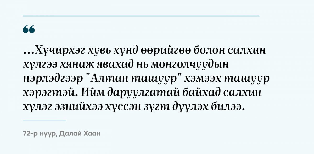 Эл бүтээлийг миний хувьд өнөөгийн дэлхийг загварчилсан өвөг дээдсийн маань замналаас гадна хэн байснаараа бахархаж, хэн байгаадаа ичих “боломж” хэмээн тодорхойлно. 800 жилийн тэртээ дэлхий дахин өвөг дээдсэд маань бараалхалж, тэдэнтэй найрсаг харьцаж, худалдаа наймаа хийхийг хүсэж явжээ. Товчхондоо, тэд тоглоомын ширээний том тоглогчид нь байж. Харин өнөөгийн бид аль хавьд сууж байгаа бол?