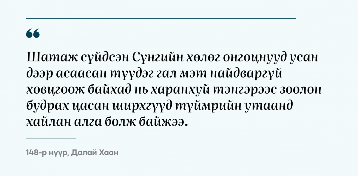 Хуурай газрын дайчид хэрхэн далай тэнгистэй танилцсан тухай сонирхох: Морин дэл дээрээ салхи зүсэн босоо давхих монгол дайчинд модон хөлөгт суугаад салхинд туугдан явна гэдэг тийм ч таатай байхгүй нь ойлгомжтой. Хэдийгээр монголчуудын хийсэн далай тэнгисийн дайн тулаанууд хуурай газар дээрх шигээ амжилттай байгаагүй ч тэд хэдхэн арваны дотор тулааны талбараа бүрэн сольж чадсан нь өөрөө амжилт билээ.