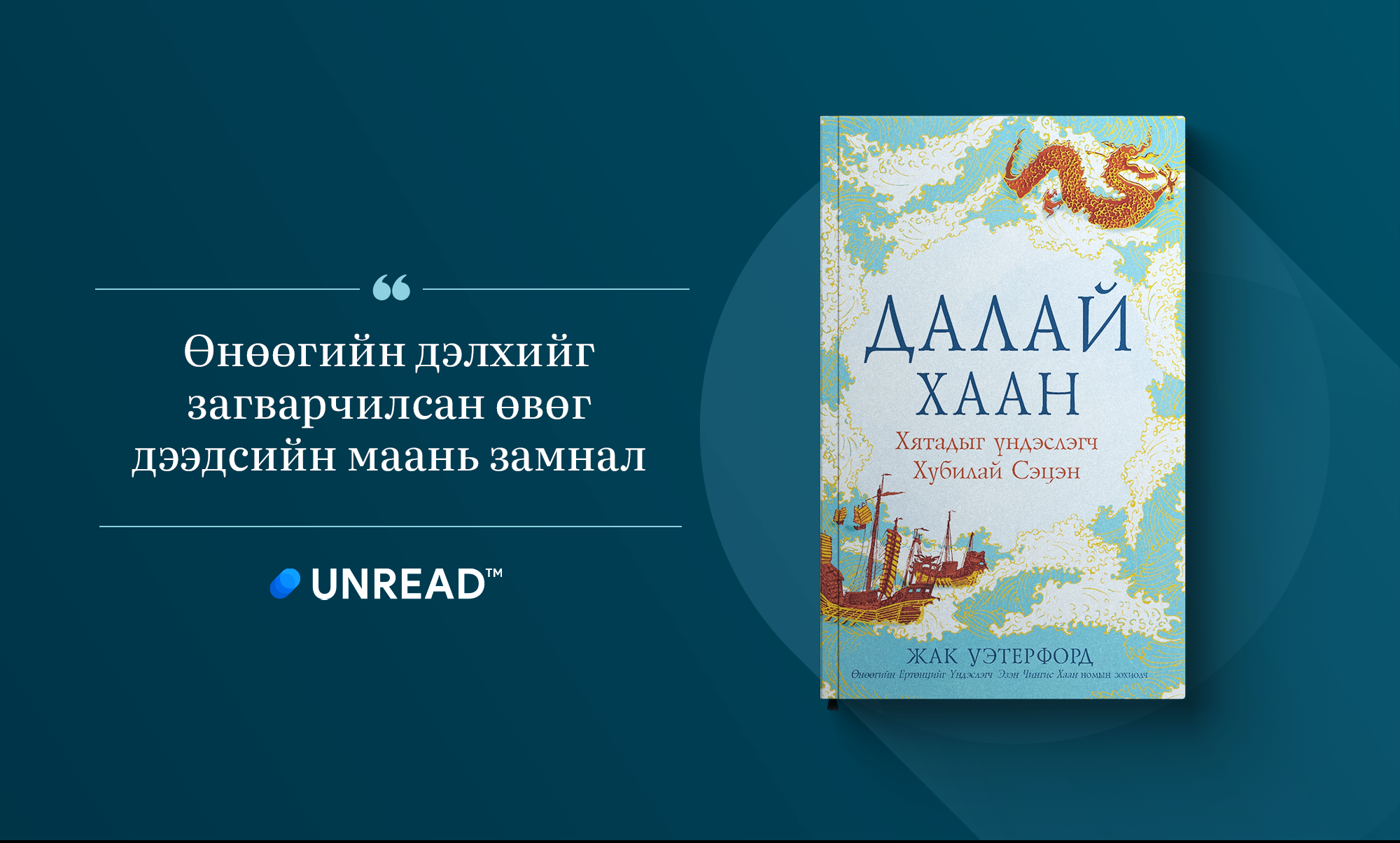 Зуны амралтад минь хань болсон ном бол өнөөдрийн танилцуулах “Далай хаан: Хятадыг үндэслэгч Хубилай Сэцэн”. Энэ нь XIII зууны Монголын түүхийг дэлхий нийтэд гарамгай таниулагч Жак Уэтерфордын шинэхэн бүтээл бөгөөд өнгөрсөн жил уншигчдын хүртээл болсон юм. Анх сэдэв, гадрыг нь хараад ихэд шохоорхож байлаа. Ингээд гарсан даруйд нь англи хэл дээрх цахим хувилбарыг уншиж эхэлсэн ч дуусгаж чадаагүй билээ.