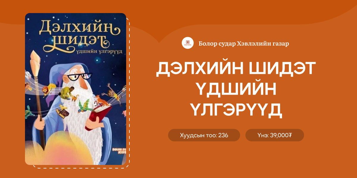 Болорсудар хэвлэлийн газраас уншигчдын гарт хүрч буй цоо шинэ бүтээл бол “Дэлхийн шидэт үдшийн үлгэрүүд” юм. Энэхүү номд өмнө нь хаана ч нийтлэгдэж байгаагүй, дэлхийн улс орнуудын хамгийн шинэ, содон үлгэрүүдийг түүвэрлэн багтаажээ.