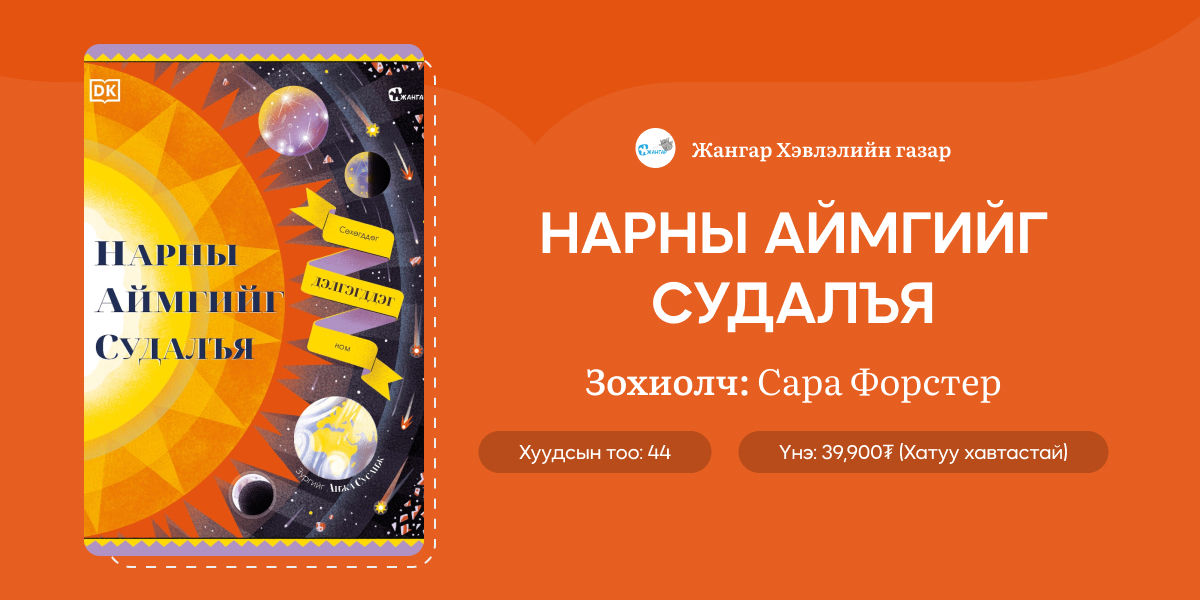 Бид сурах бичиг, хичээлийн ном, зурагт эсвэл утсаараа сансар огторгуйн тухай зөндөө л харж, сонсдог шүү дээ. Гэхдээ тэрхүү хязгааргүй уудам ертөнцийн жинхэнэ гайхамшгийг төдийлөн сайн мэддэггүй билээ. Тэгвэл энэхүү ном таныг аварга том гаргуудаас эхлээд алс холын сүүлт одод, жижигхэн эрхэс хүртэлх сансрын хамгийн сонирхолтой цэгүүдээр аялуулах болно.