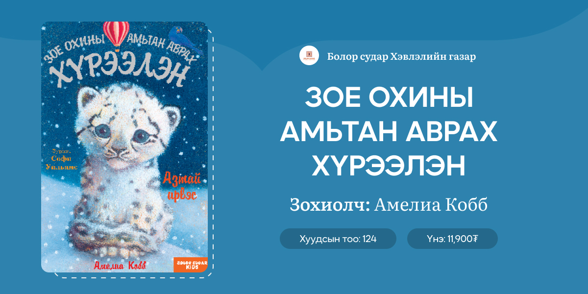 Хэрэв та хүүхдийнхээ номын санг баяжуулж, тэднийг номд шимтэн дурлуулах шинэ бүтээл хайж байгаа бол “Зое охины амьтан аврах хүрээлэн” цуврал номыг сонирхоорой. Тус бүтээлд амьтантай ярьж чаддаг Зое охины тухай өгүүлэх ба хүүхдийг багаас нь амьтдыг хайрлах, байгаль дэлхийгээ хамгаалах нинжин сэтгэлтэй хүн болж төлөвшихөд тустай.