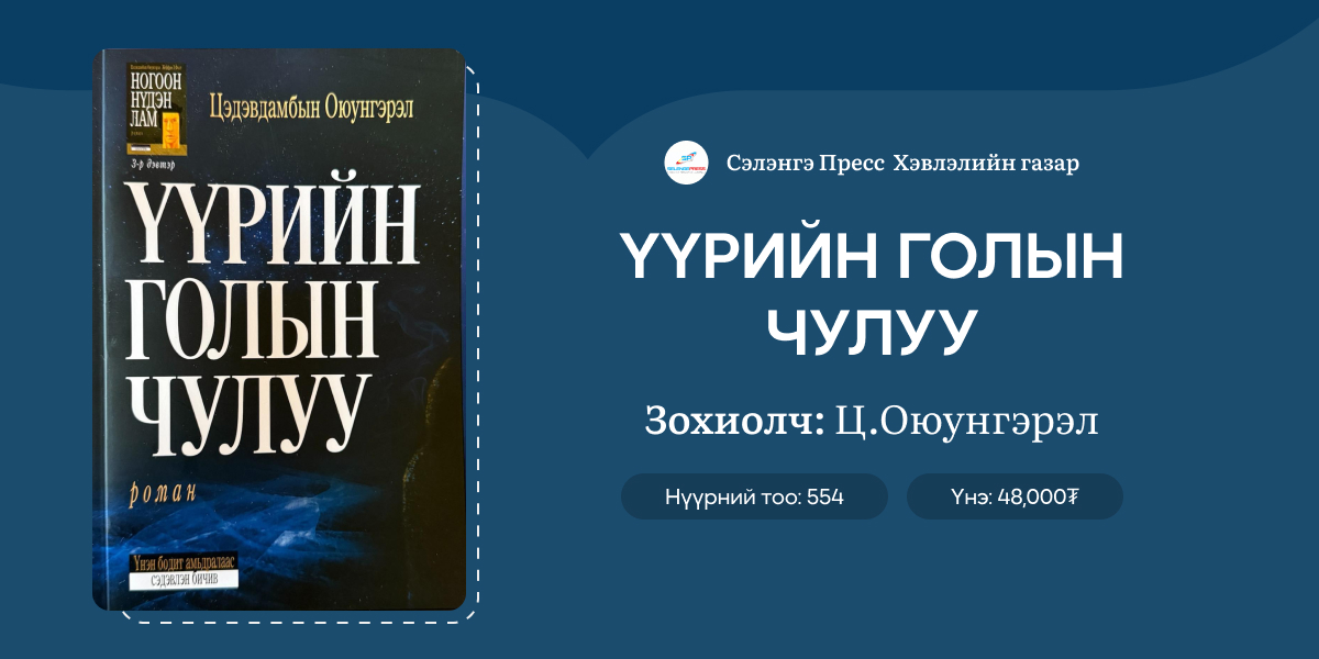 Монголын орчин үеийн утга зохиолын сор бүтээлүүдийн нэг, уншигчдын дунд борлуулалтаараа тогтмол тэргүүлдэг “Ногоон нүдэн лам” романы гуравдугаар дэвтэр болох “Үүрийн голын чулуу” энэ сард уншигчдын хүртээл болжээ.