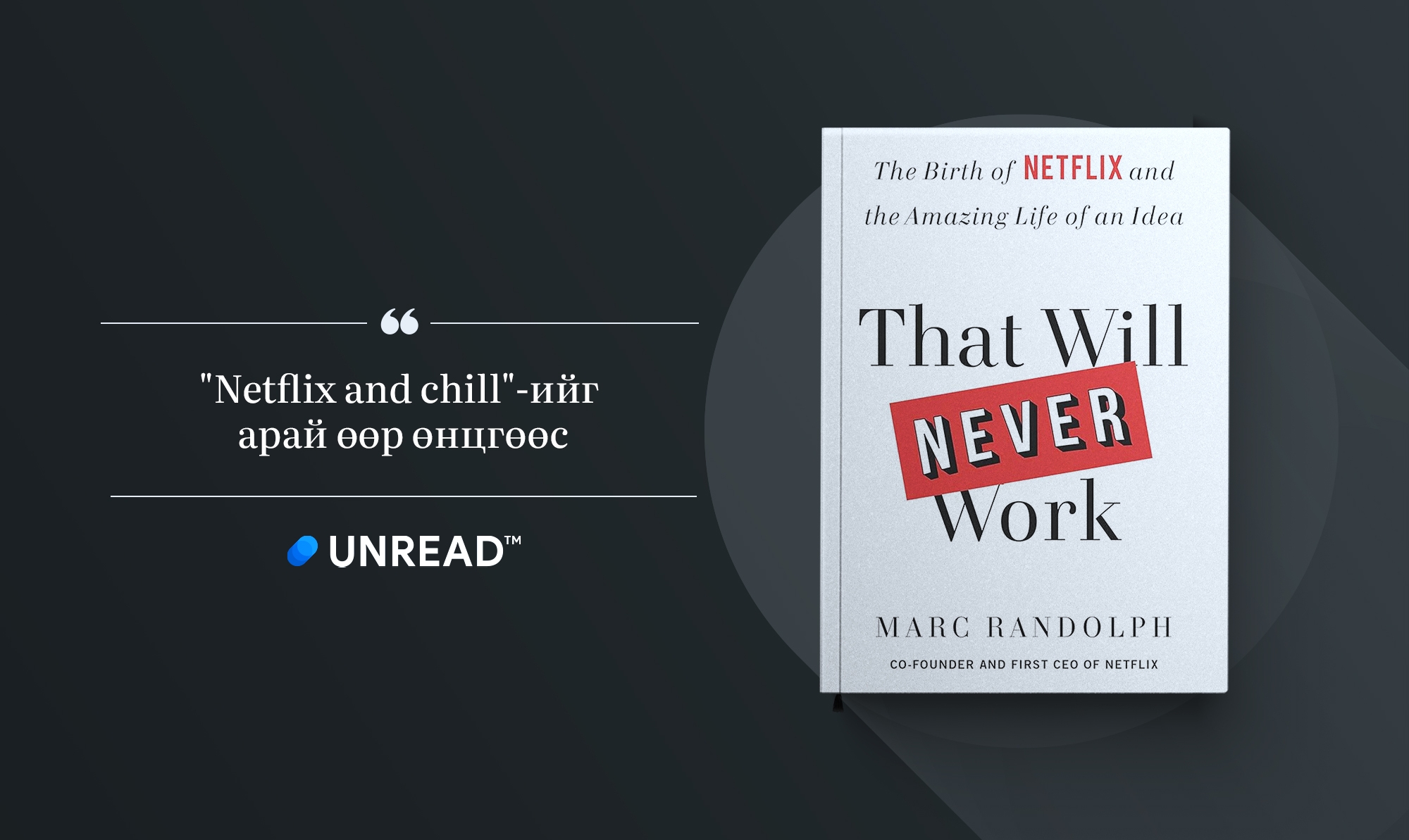 Ингээд хайрын баяраар “Netflix and Chill” хэмээх орчин цагийн соёлын салшгүй нэг хэсэг болсон, магад технологийн салбарын хамгийн романтик үүсгэн байгуулагчдын нэг (яагаад гэдгийг удахгүй тайлбарлана)-ийн бичсэн “That Will Never Work” номын тухай танилцуулъя.