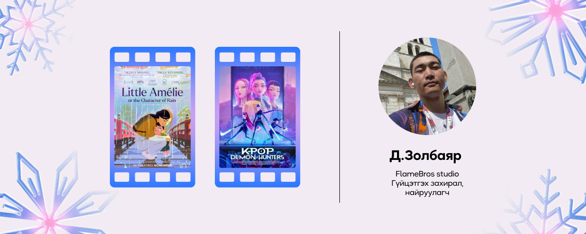 Энэ жилийн өнгийг нэмсэн анмешнуудын нэг бол яах аргагүй “Kpop Demon Hunters”. “Kpop+Superpower+Kdrama+Anima+3D+Action+Өөрөө өөрийгөө байгаагаар нь хүлээн зөвшөөрөх.”