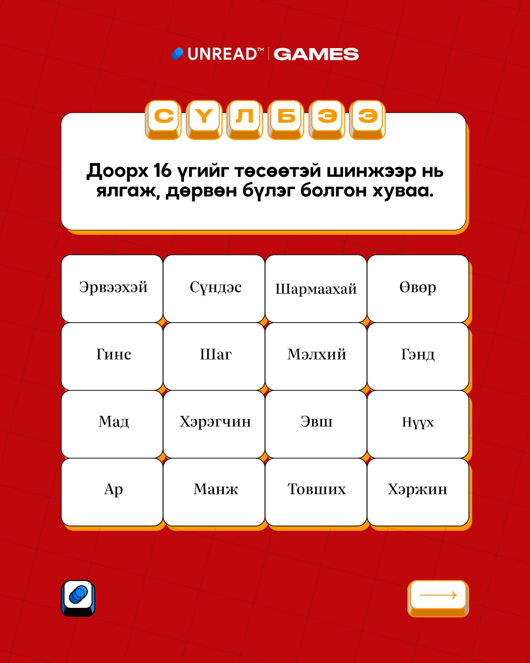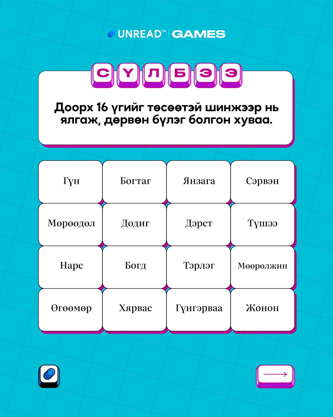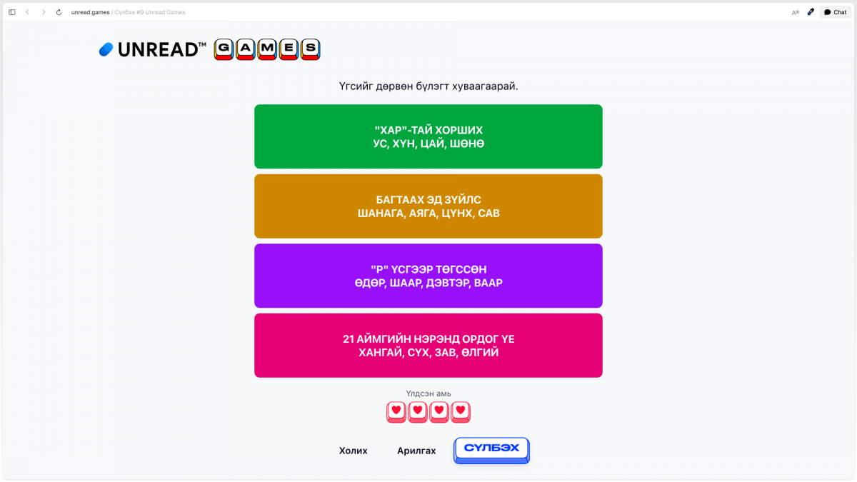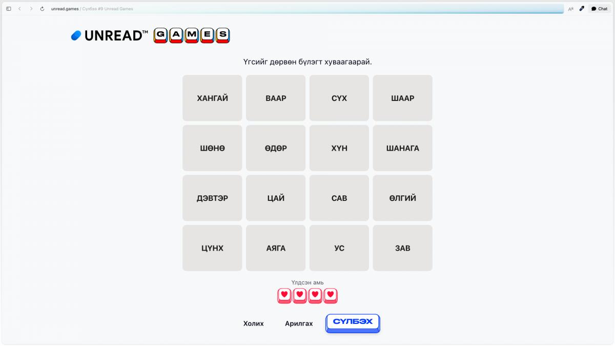 Сүлбээ тоглох - unread.games/sulbee