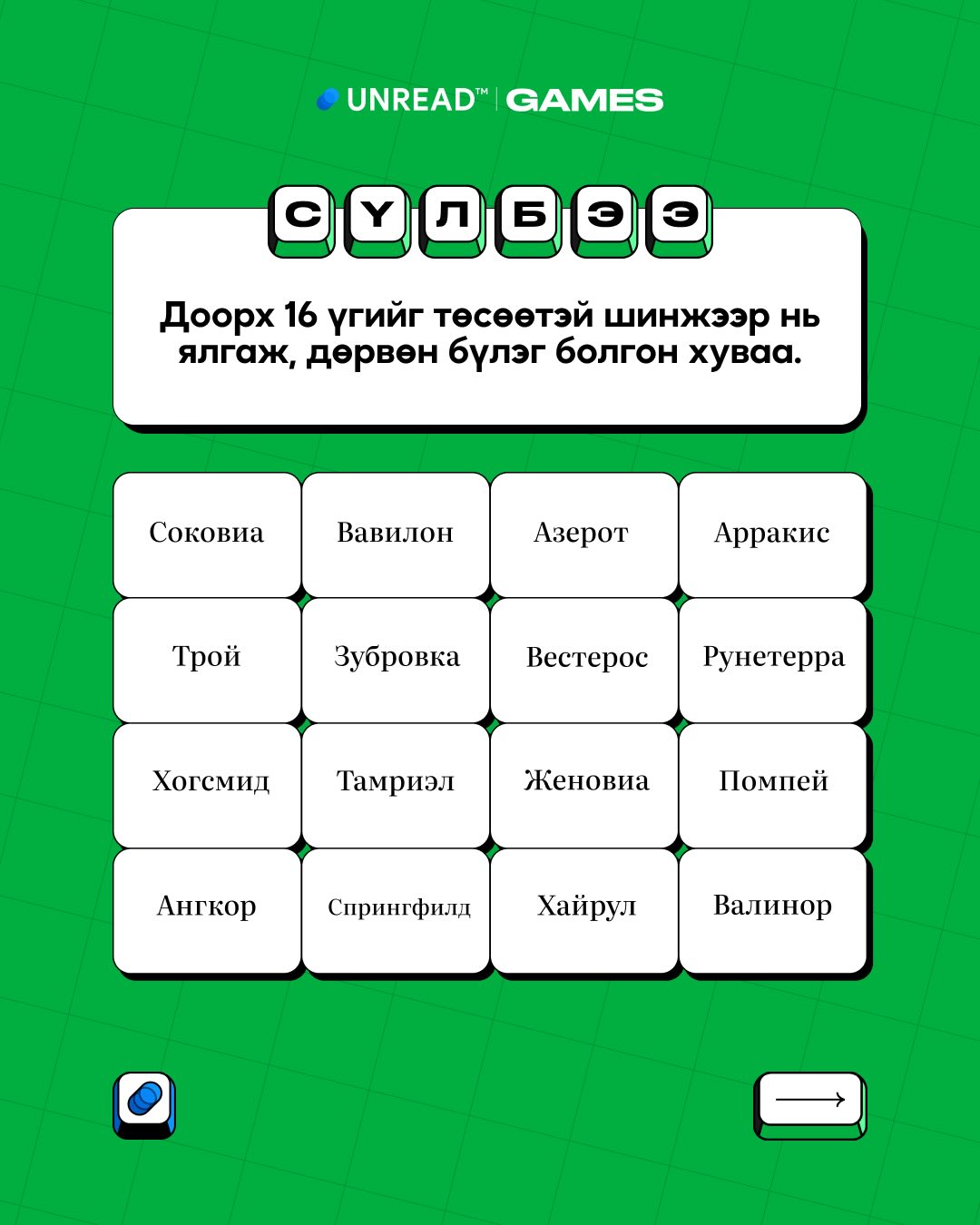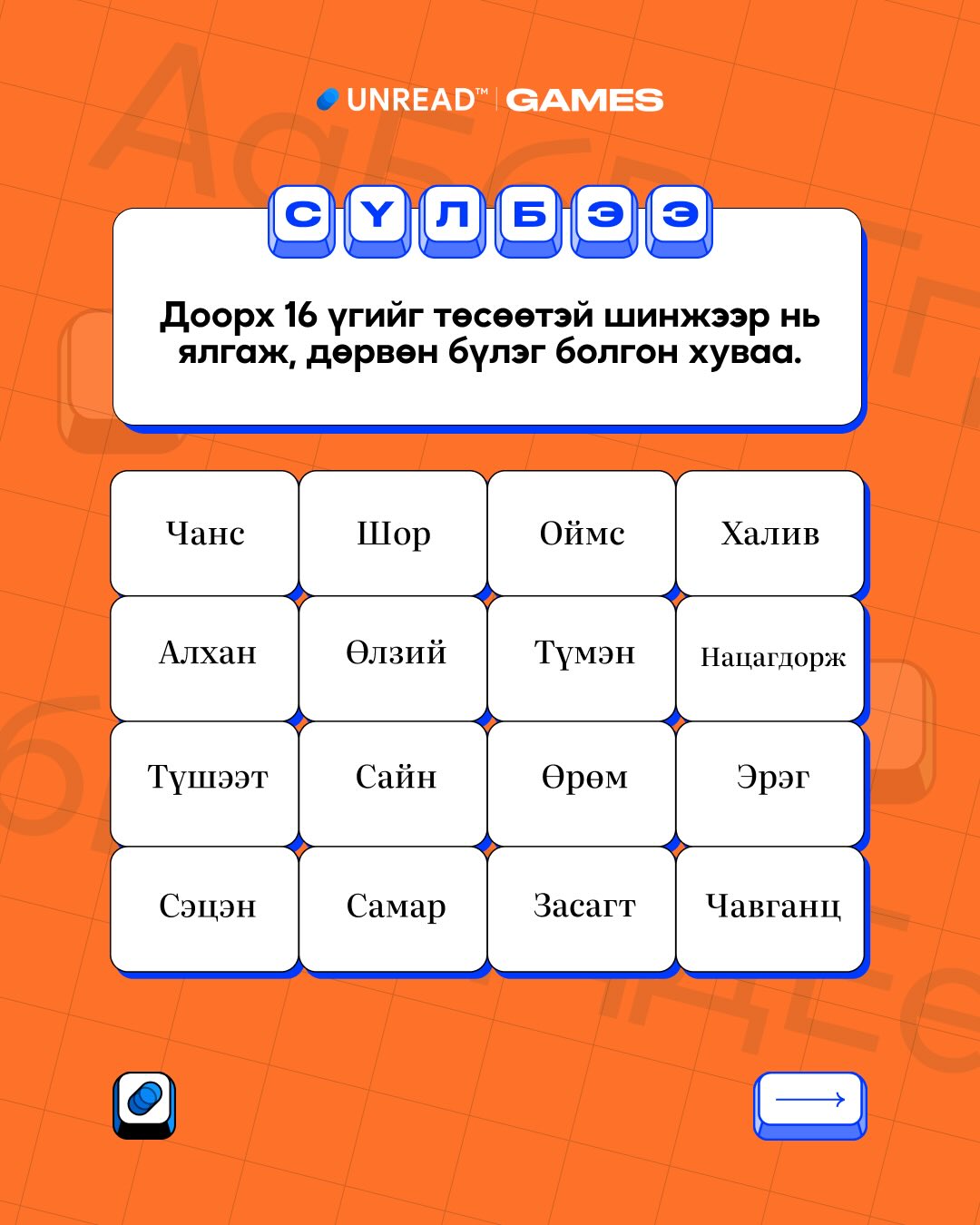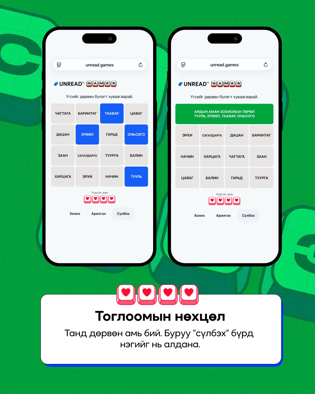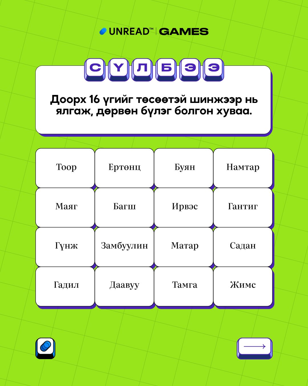 Сүлбээ тоглох - unread.games/sulbee