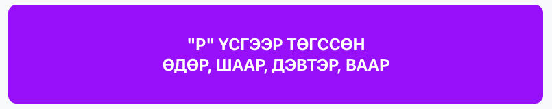 “дэвтэР, шааР, өдөР, вааР” гэсэн дөрвөн үг дөрвүүлээ “Р” үсгээр төгссөн байгаа нь тэдний ижил шинж чанар тул нийлж, нэгэн амжилттай сүлбээг үүсгэнэ.