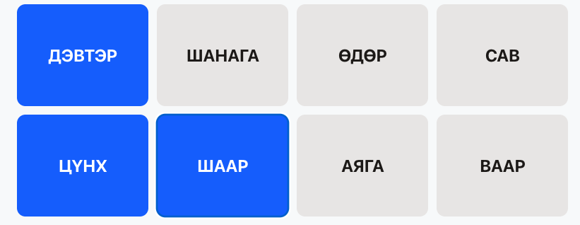 Иймд тоглогч та зөвхөн тухайн өгөгдсөн үгийг бус тэдгээр үгс ямар тохиолдолд ашиглагддаг, юуны хэсэг байж болох вэ гэдгийг бодож хэвшээрэй.