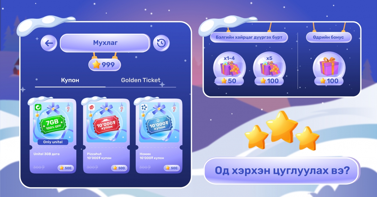1. “Бэлэг дүүрэн” урамшуулалд дурын найзаа урьж оролцуулан нэг Golden ticket-ийг 500 одын хамт цуглуулах