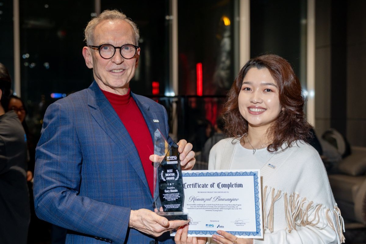 Энэ жилийн “Шилдэг ментор”-оор Америкийн Худалдааны Танхимын Тэргүүн Гари Стефен Биондо тодорлоо. Тэрээр YPG хөтөлбөрт хоёр дахь жилдээ ментороор ажиллаж буй бөгөөд Монгол Улсад 10 жилийн хугацаанд бизнесийн өсөлтийг дэмжих, нийгэмд ач холбогдолтой төслүүдийг хэрэгжүүлэх, иргэдийн амьдралын чанар ба амьжиргааг сайжруулахад идэвхтэй хувь нэмэр оруулсаар ирсэн, салбартаа нэр хүндтэй мэргэжилтэн юм.