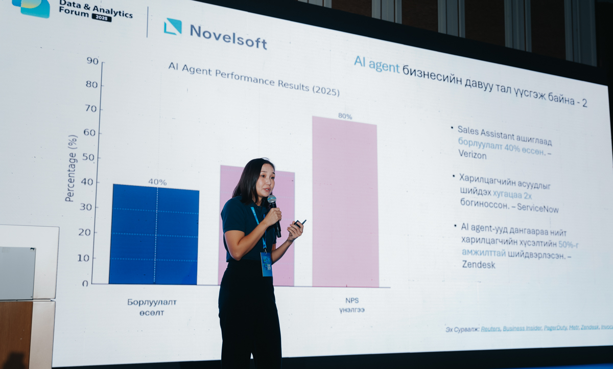 Тус форумын энэ удаагийн сэдэв бол Ignite the Future - Real-Time Data for AI Agents. Технологийн шинэлэг шийдлүүдийг бизнесийн байгууллагуудад санал болгож, тэдний хөгжил, дэвшилд хувь нэмэр оруулахыг зорьдог Novelsoft компанийн зохион байгуулдаг тус форум энэ удаа бизнесийн байгууллагуудад зориулсан хиймэл оюун (AI), бизнесийн оюун (BI), өгөгдлийн менежментийг гол сэдвээ болгосноороо онцлогтой болж байна. Тэр дундаа дэлхийн технологийн салбарт цахилж буй шилдэг экспертүүд хүрэлцэн ирж, хиймэл оюуны талаар халуун яриа өрнүүлсний зэрэгцээ дотоодын технологийн болон бизнесийн байгууллагууд хүрэлцэн ирж, өгөгдөлд суурилсан шийдвэр гаргалт, өгөгдлийн засаглалыг нэвтрүүлэн ашиглаж буй туршлагаасаа хуваалцлаа.