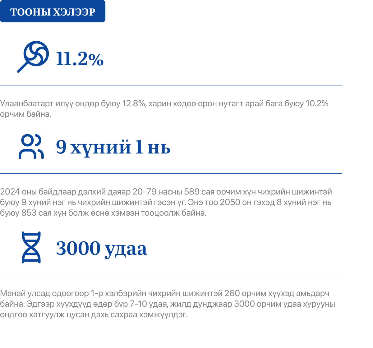 XXI-р зууны чимээгүй тахал гэгддэг чихрийн шижин өвчний талаарх ойлголтыг нэмэгдүүлэх, чихрийн шижинтэй хүмүүсийг ойлгох, урьдчилан сэргийлэхэд уриалах зорилготой дэлхийн чихрийн шижингийн өдөр өчигдөр болж өнгөрлөө.