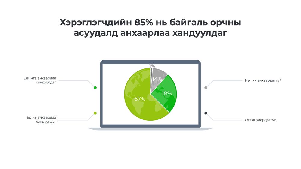 - 85 хувь нь байгаль орчны асуудалд анхаарал хандуулдаг