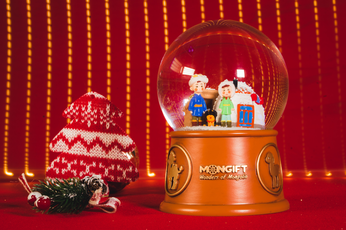 Нүүдэлчин ард түмний ахуй амьдралыг бяцхан шилэн бөмбөлөгт багтаасан энэхүү бэлэг багачуудын анхаарлыг татах нь гарцаагүй. Таван хошуу мал, хоточ нохойн дуу гарч, цас будрах нь монгол ахуйн соёл, уламжлал, хэв маягийг мэдрүүлнэ.