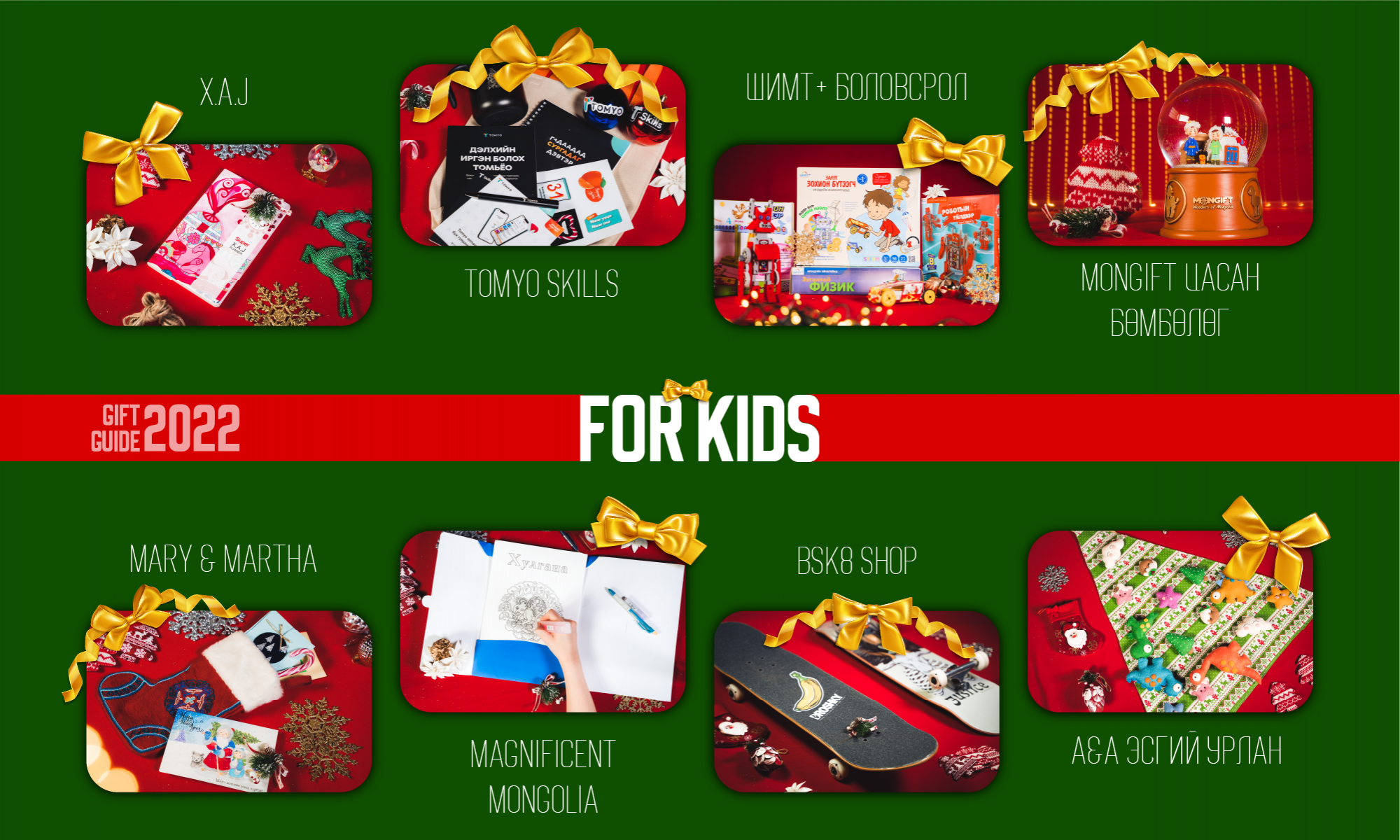 Оюуны хөрөнгө оруулалт бол амттан чихрээс илүү үнэ цэнтэй бэлэг билээ. Робот угсарч, тоо бодож, физикийн шинжлэх ухаан, хөдөлгүүрийн үндсийг ойлгож, логик сэтгэлгээ, орон зайн мэдрэмжээ хөгжүүлэхэд туслах дөрвөн төрлийн тоглоомыг сониуч сэргэлэн хүүхдүүдэд зориулж байна.