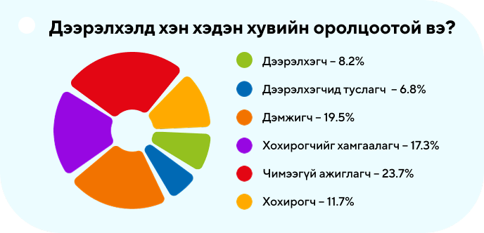 - "Аюулгүй сургууль" аргачлалын санал асуулгад оролцсон сурагчдын 79% нь дээрэлхэл дунд байгаагаа илэрхийлсэн байна.