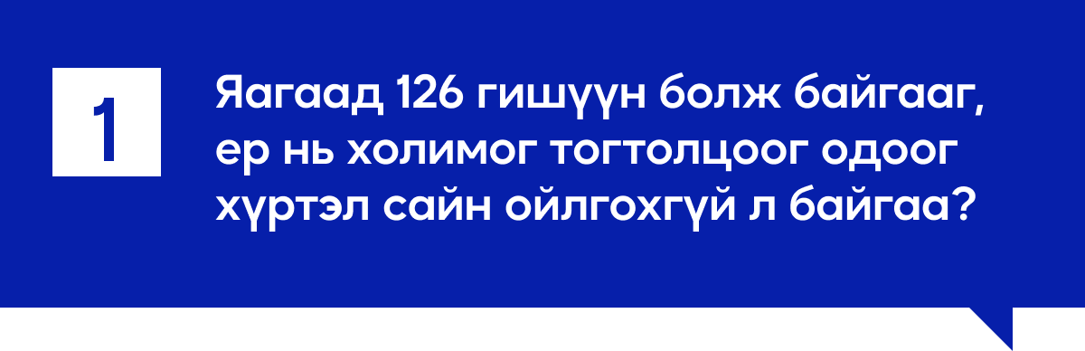 Ердөө долоохон өдрийн дараа бид түүхэндээ анх удаа 126 УИХ-ын гишүүнийг ардчилсан сонгуулиар сонгох гэж байна. Шинэ хууль, шинэчилсэн тойрог, анхны 126 гишүүн гээд олон онцлох үйл явдалтай энэ удаагийн сонгуулиар иргэдийн дунд хангалттай ойлгогдоогүй, эргэлзээтэй хэвээр буй зүйлсийг тодорхой болгох зорилгоор энэхүү нийтлэлээ бэлтгэлээ.