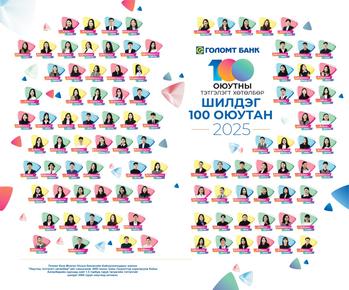 Үе тэнгийн 1,000 гаруй оролцогчдоос өөрийн авхаалж самбаа, манлайллаараа ялгарч, шилдэг 100 оюутны тэтгэлэгт хамрагдсан ирээдүйн чадварлаг мэргэжилтнүүд болон залуучуудын боловсролд бодитой хувь нэмрээ оруулж буй Голомт банкны хамт олонд цаашдын ажил үйлсэд нь амжилт хүсье.