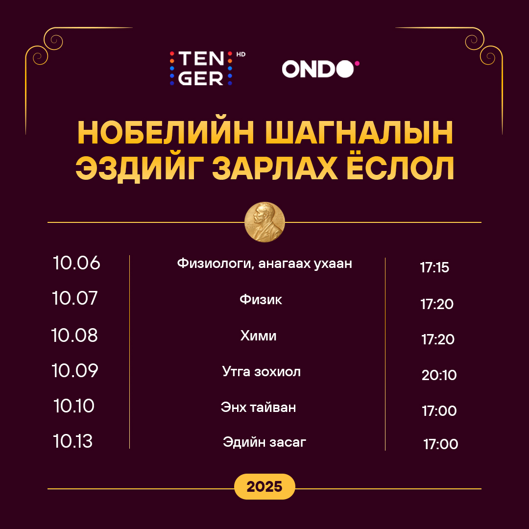 Ингээд шинжлэх ухааны түүхэнд шинэ бүлэг нээсэн, 2025 оны байгалийн шинжлэх ухааны Нобелийн шагналуудыг хамтдаа сонирхоцгооё.