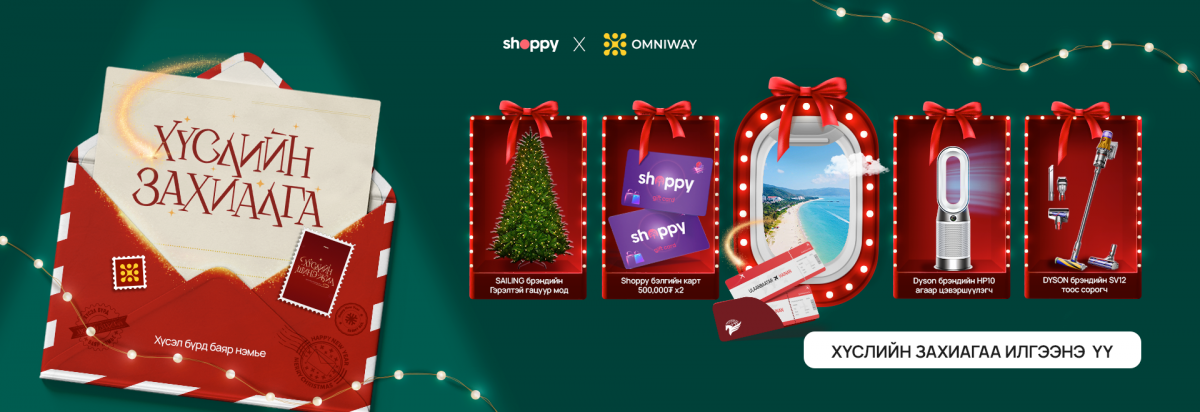 Ташрамд дурдахад, Shoppy, OmniWay нар хамтралынхаа хүрээнд “Хүслийн захиалга” урамшууллыг зарлаж, гацуур мод, Shoppy-ийн бэлгийн карт, агаар цэвэршүүлэгч, тоос сорогч, супер азтан болох Хайнан руу хосоороо аялах эрх гэсэн таван бэлгийн эздийг шалгаруулж байгаа гэнэ. Эдгээрээс гацуур модны азтан нь өнгөрөгч мягмар гарагт тодорсон тул үлдсэн дөрвөн бэлгийн эзэн болох боломж хүн бүрд үлдээд байна.