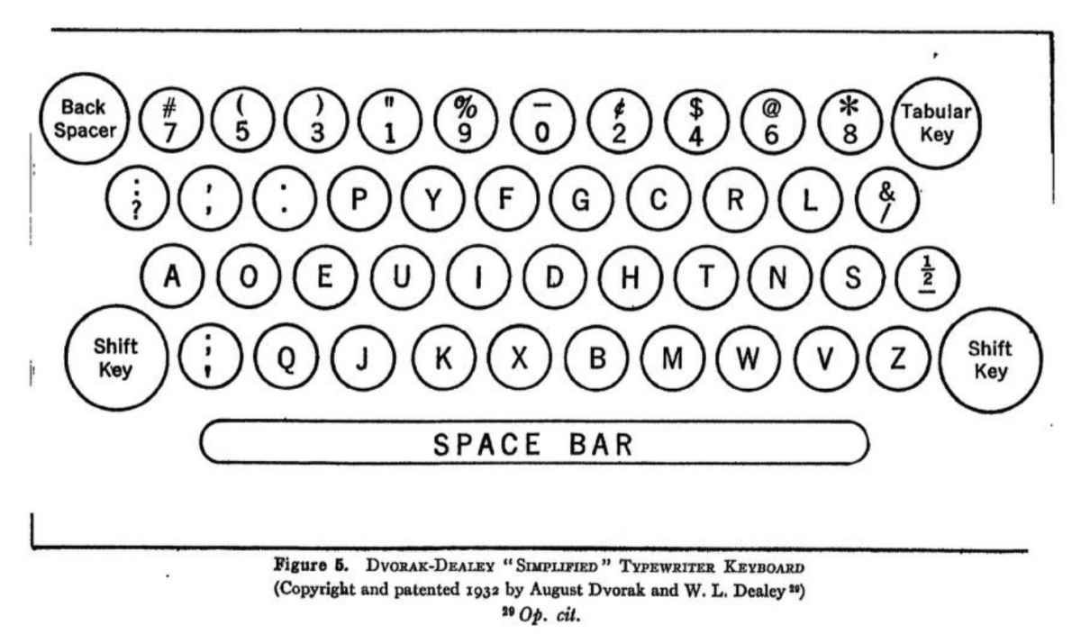 Август Дворак гэх боловсролын сэтгэл судлаач, Вашингтоны Их Сургуулийн профессор 1930-аад онд Уильям Дилигийн хамт DVORAK нэрт цоо шинэ форматыг хөгжүүлж, 1936 онд патентлуулсан байдаг.
