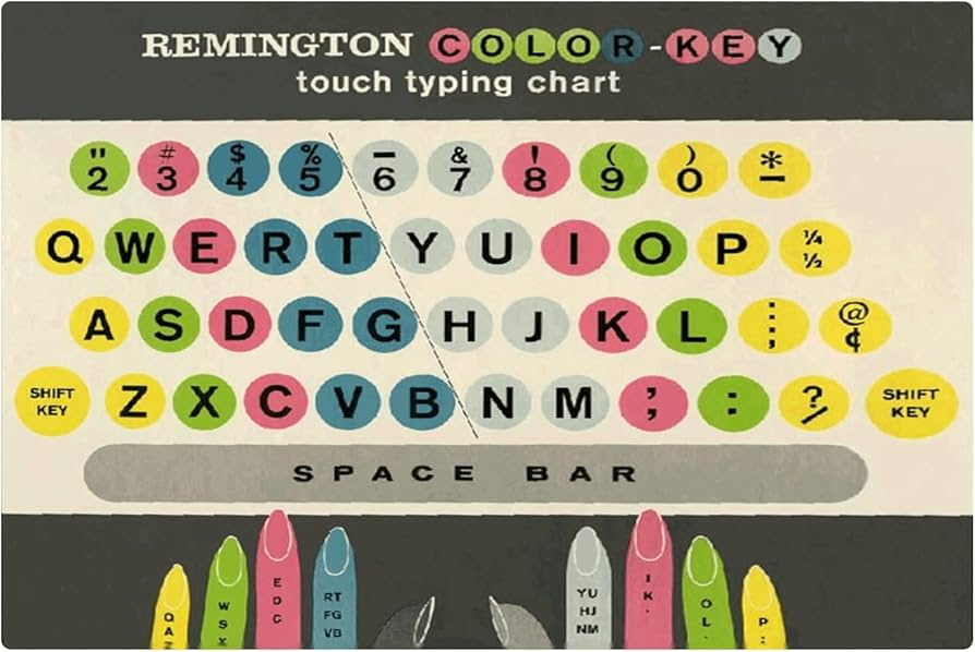 Сонирхуулахад, тэд 0 ба 1 цифрийг англи хэлний O болон I үсгээр орлуулах боломжтой хэмээн үзсэний үндсэнд анхны кэйбордоо бүтээхдээ хоёр цифрийг гээгдүүлсэн гэдэг. Ийнхүү төгөлдөр хуурын хар, цагаан даралт хооронд сөөлжилдсөн үсэг, тэмдэгтийн дараалал доорх байдлаар гарч байв:
