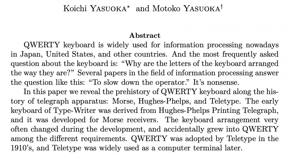 Гол асуудал хамгийн оновчтой тайлбарыг олж тогтооход бус QWERTY яагаад өнөө цагт ч ашиглагдсаар байгааг анзаарахад оршино.