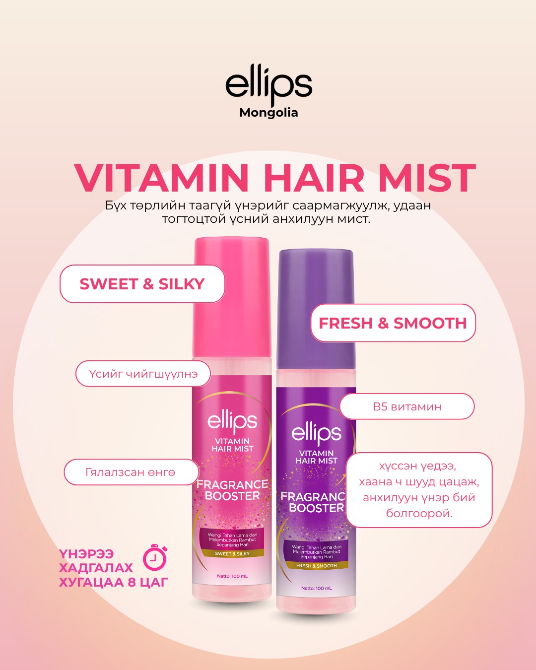 Бүх төрлийн таагүй үнэрийг саармагжуулж, удаан тогтоцтой үсний анхилуун үнэртэй мист. Pro Vitamin B5 найрлага нь үсийг тэжээлээр хангаж, чийгшүүлж, гялалзсан эрүүл өнгийг бий болгоно. Наалдамхай биш бүтэц нь ямар ч үлдэгдэл үлдээхгүй.